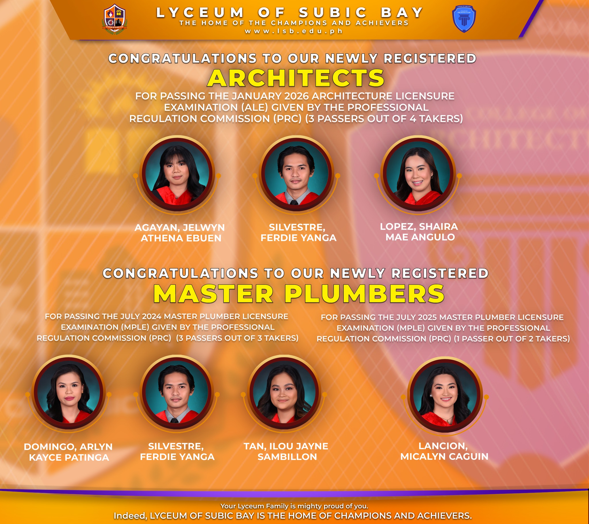At Lyceum Subic Bay, our quest is your future. Through our innovative instructions, we can shape you into excellent individual. We can reinvent you and set you apart. Why go anywhere else? Change your life...start here with us!